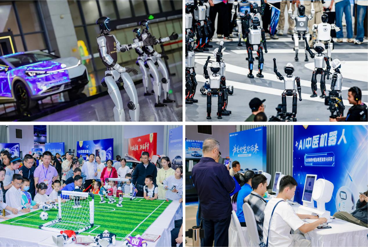 智能引导机器人、互动表演机器人、服务咨询机器人、智能讲解机器人等多场景智能装备同步亮相,实现迎宾引导、智能讲解、互动体验、信息查询、安全疏导等全流程智能服务,让观众在赏车、购车之余,沉浸式感受人工智能与汽车产业的深度融合,打造“科技感拉满” 的未来出行体验。